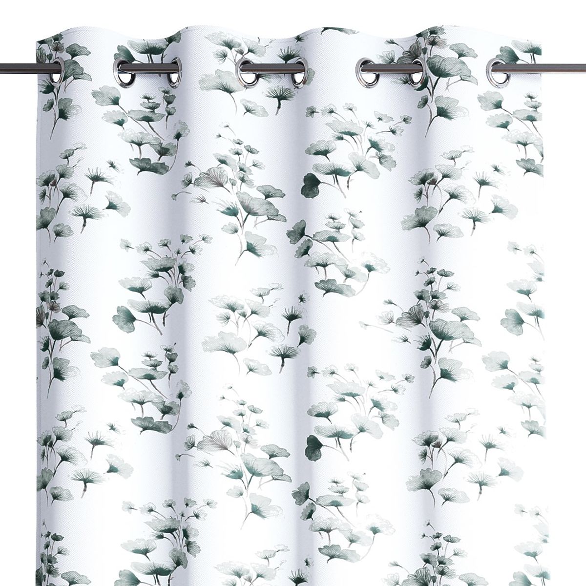 Vorhang mit pflanzlichem Druckmotiv und silbernen Metallösen. .. mehr