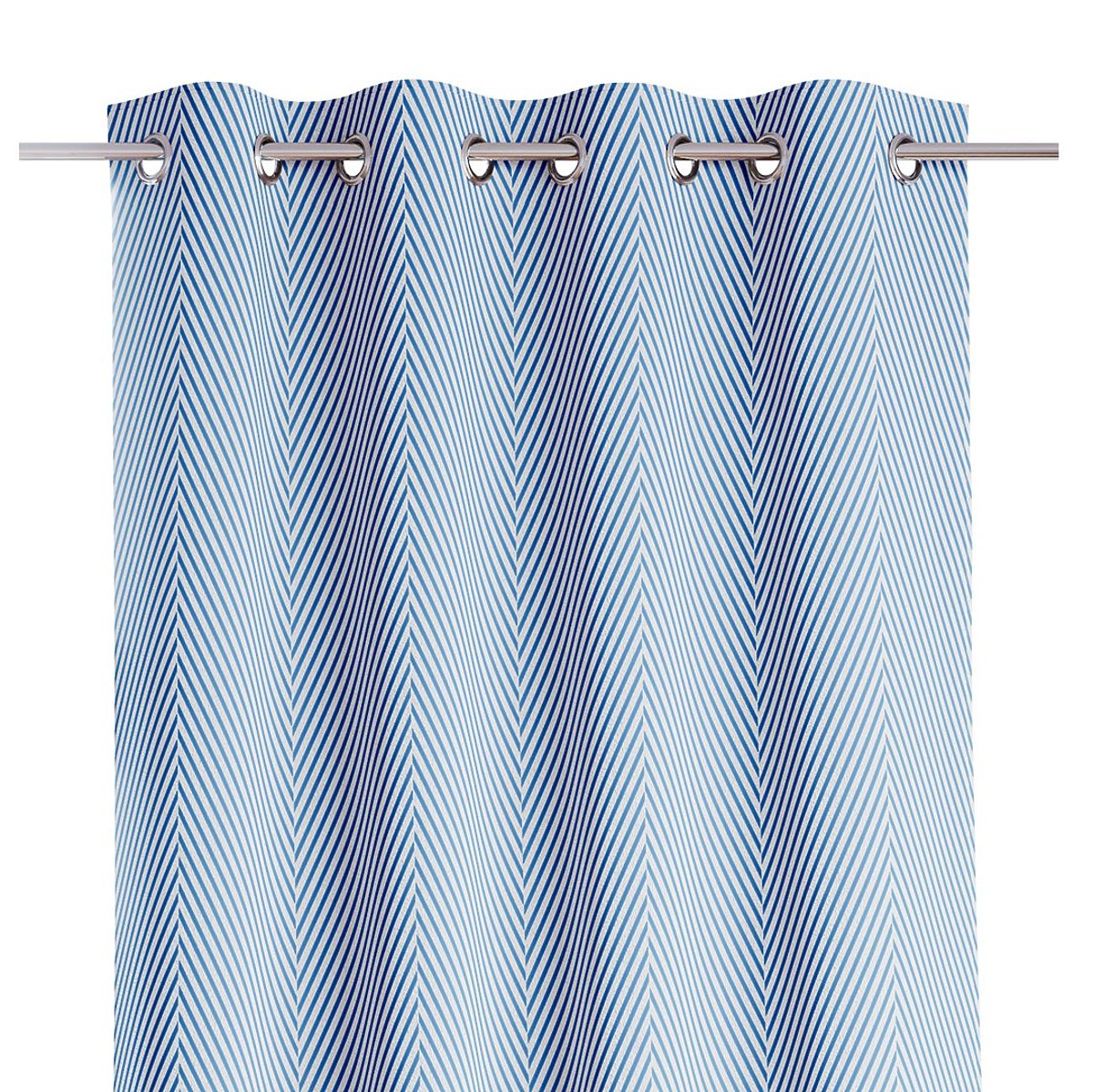 Dunkelblauer Vorhang im Boho-Stil mit silbernen Metallösen. .. mehr