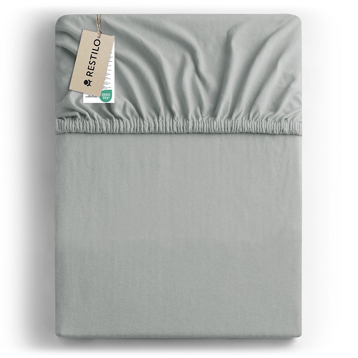 Spannbettlaken aus grauem Jersey im klassischen Stil. .. mehr