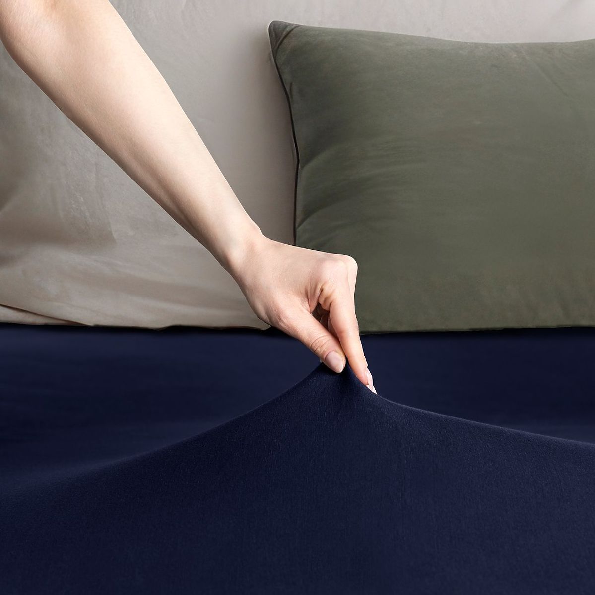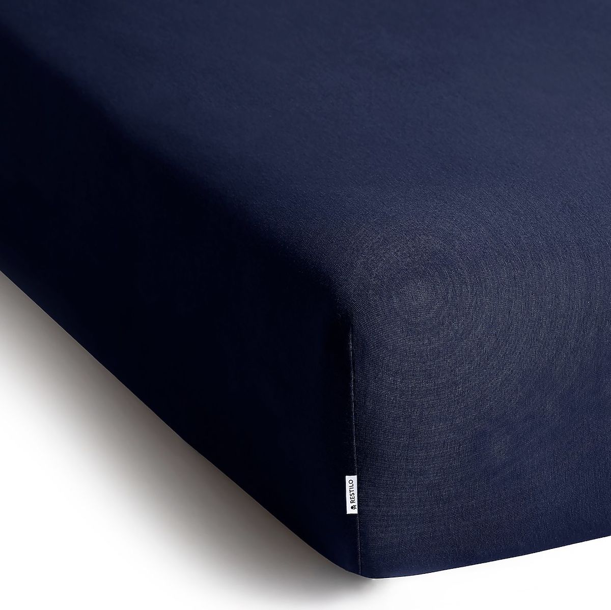 Spannbettlaken aus 100% Baumwolle in Marineblau, klassischer Stil. .. mehr