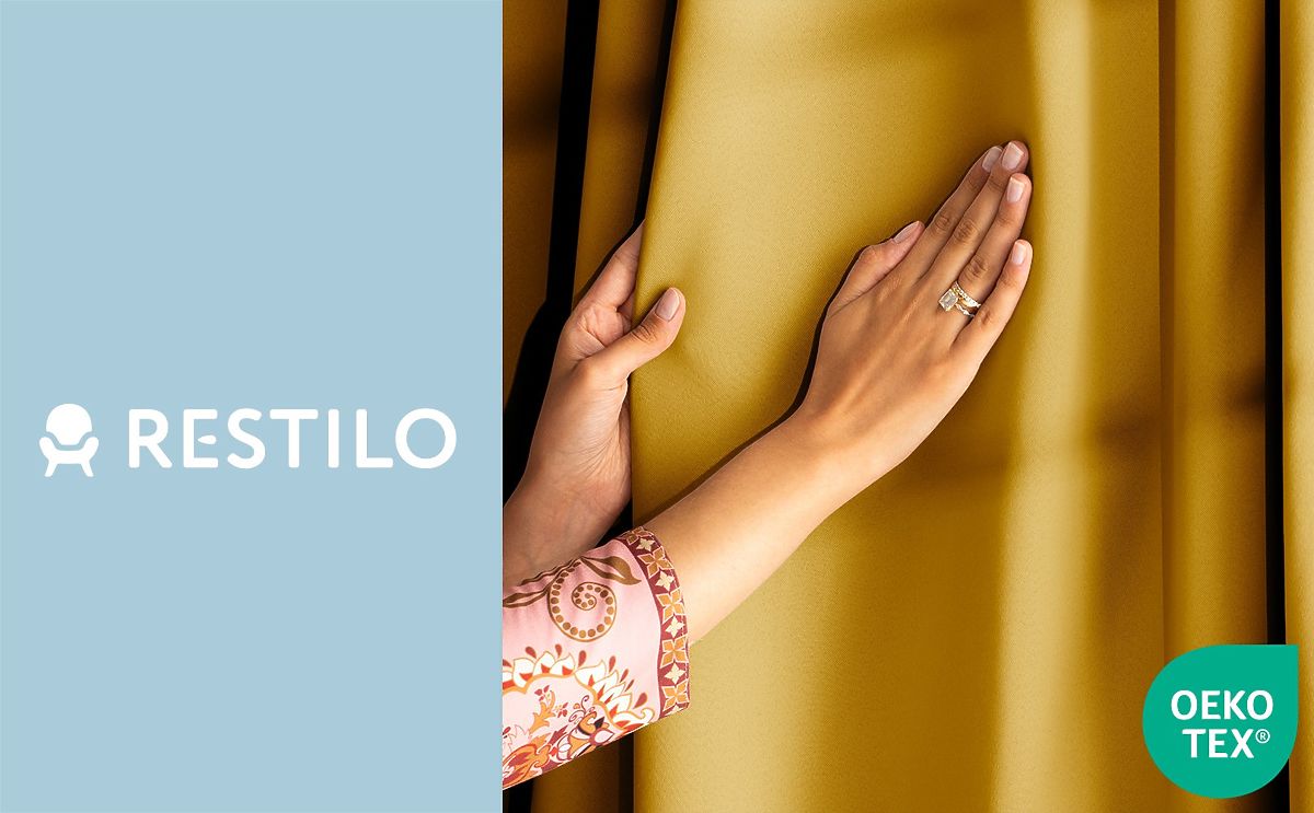 Luka-home.de » Vorhänge a vorhänge / Vorhänge / RESTILO Vorhang BLACKOUT Farbe Senf, klassischer Stil, silberne Ösen, Material