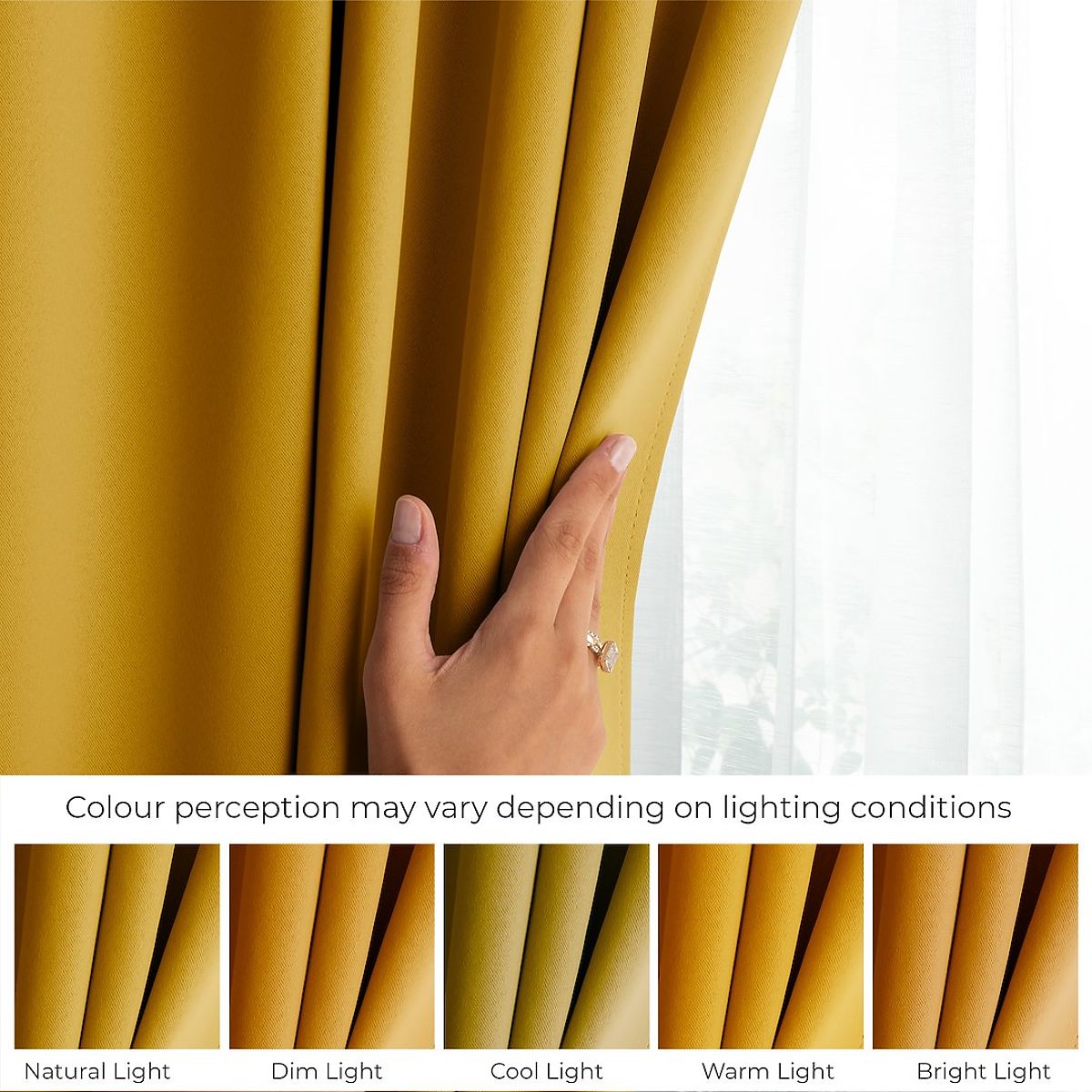 Senffarbener Blackout-Vorhang mit silbernen Ösen, 140x245 cm. .. mehr