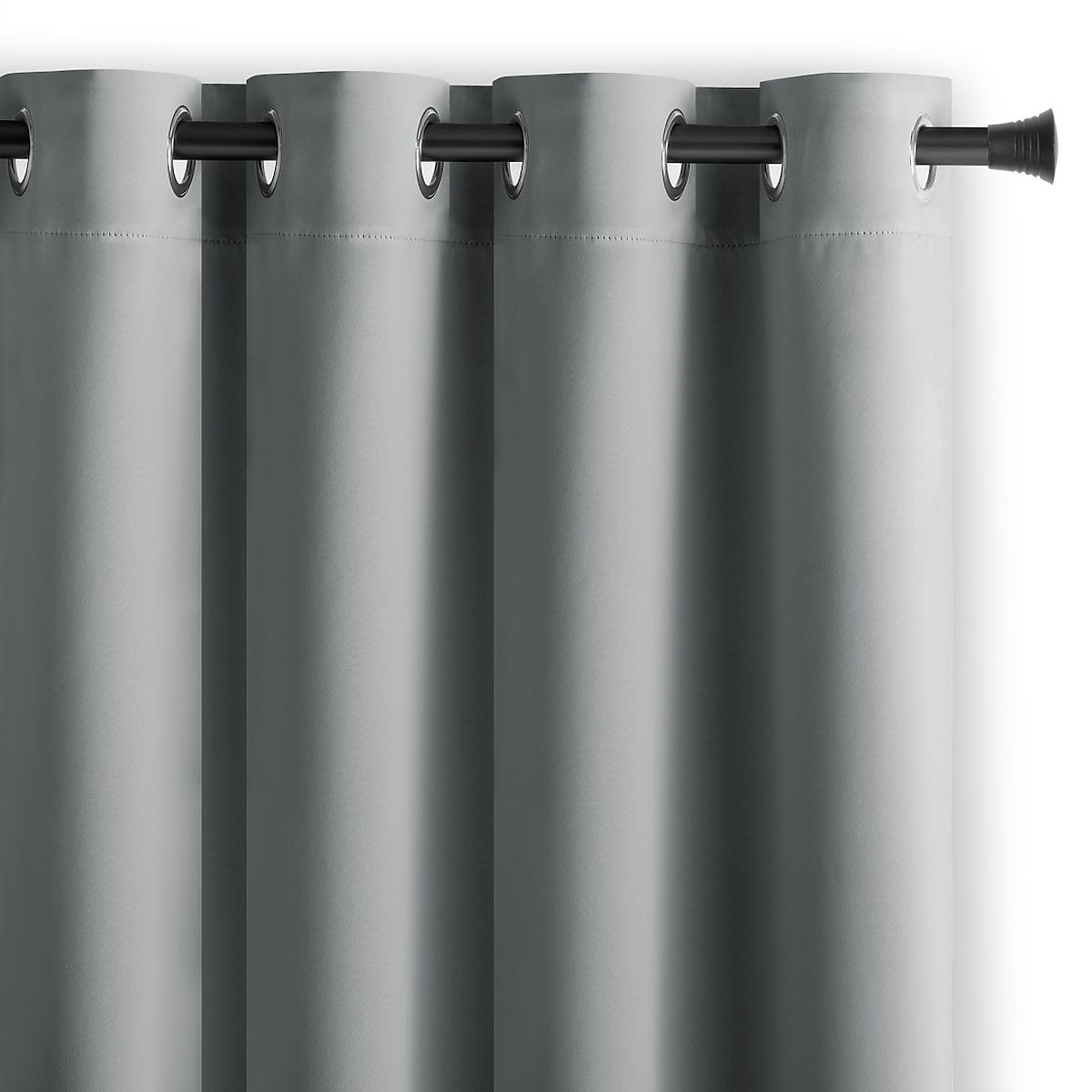 Grauer BLACKOUT-Vorhang mit silbernen Ösen und Schärpe. .. mehr