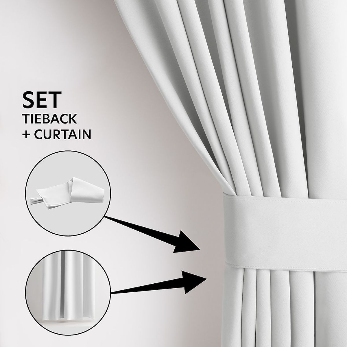 Weißer BLACKOUT Vorhang mit silbernen Ösen und Halteschleife. .. mehr
