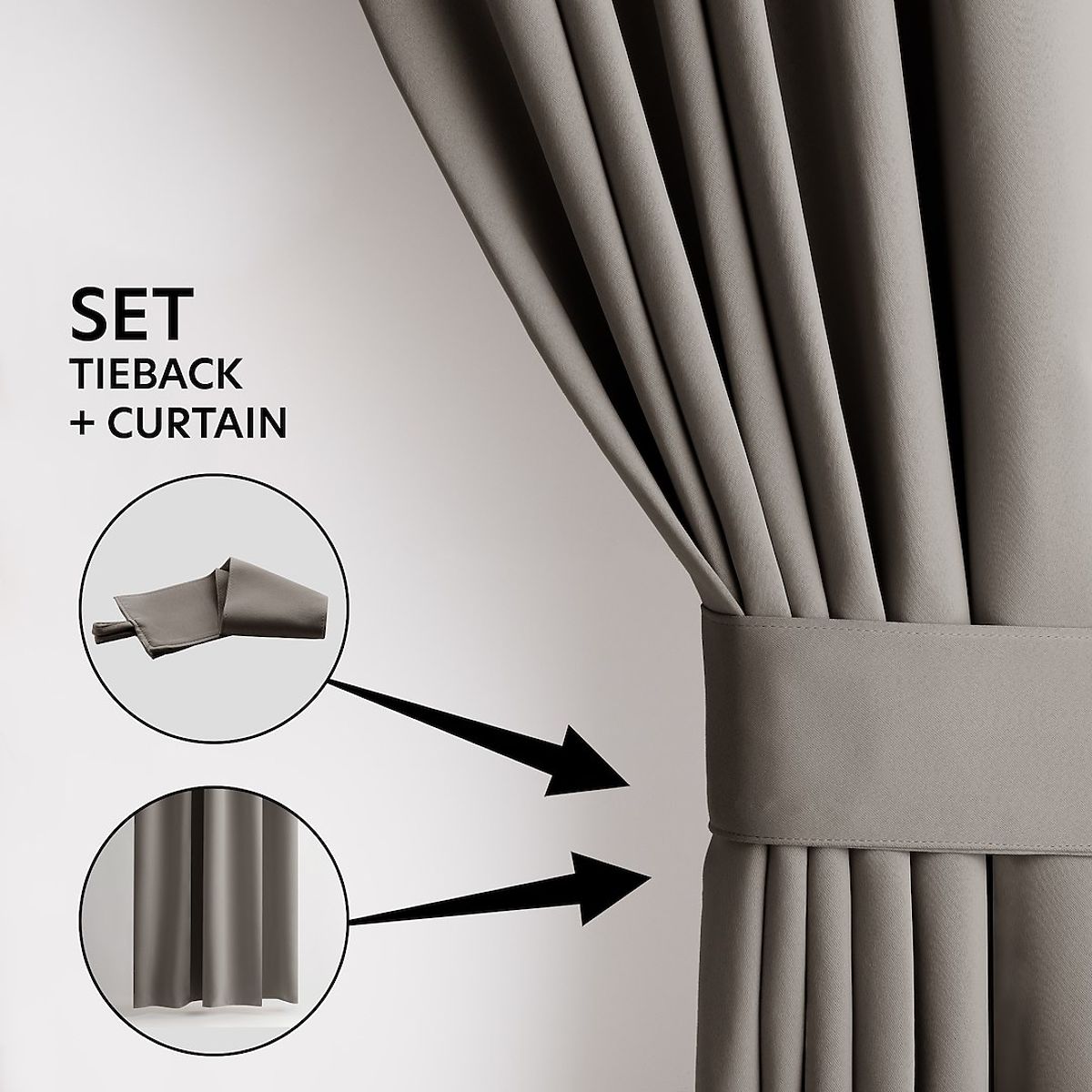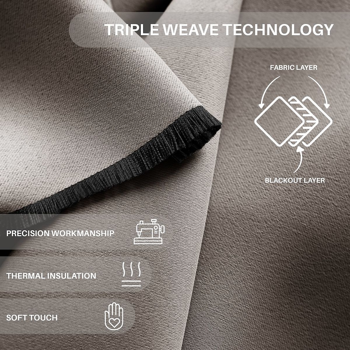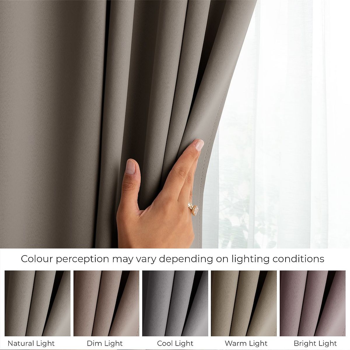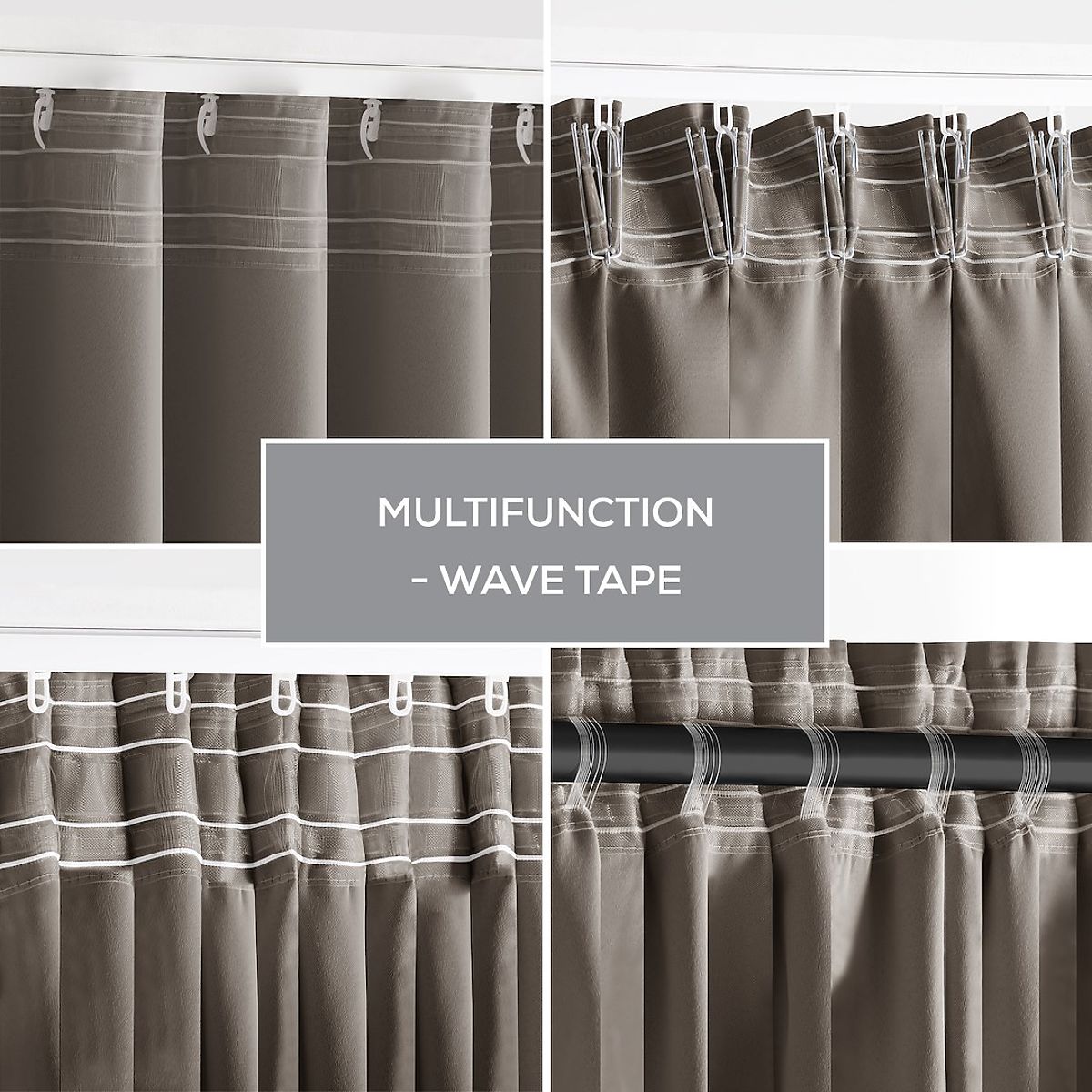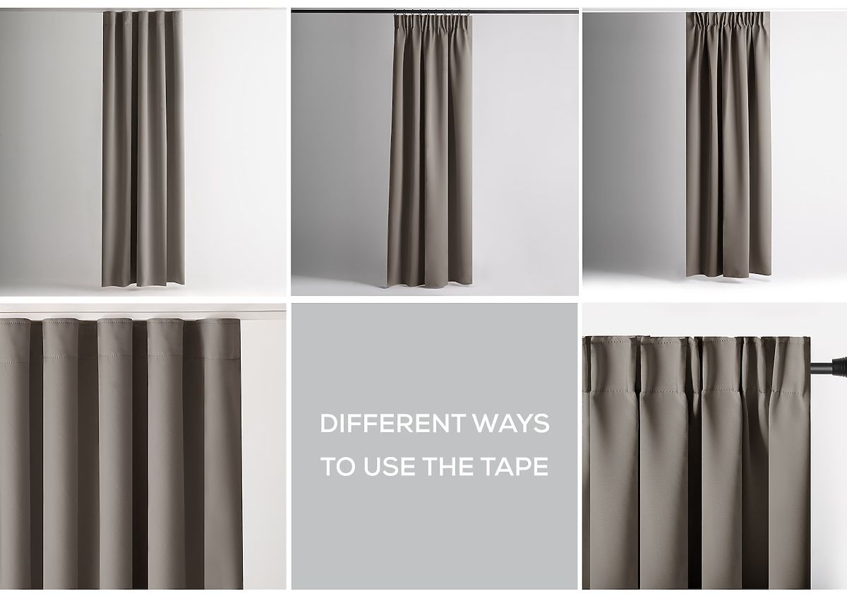 Beiger BLACKOUT-Vorhang mit 90% Verdunkelung und multifunktionalem Band. .. mehr