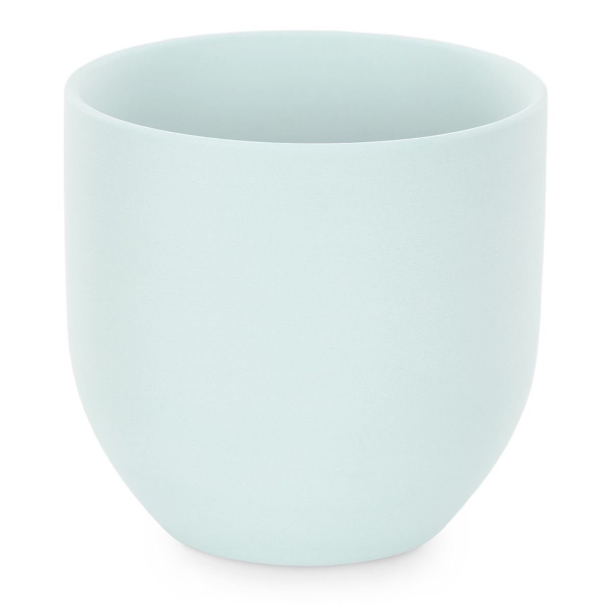 Hellblauer Keramik-Blumentopf im modernen Stil für den Innenbereich. .. mehr