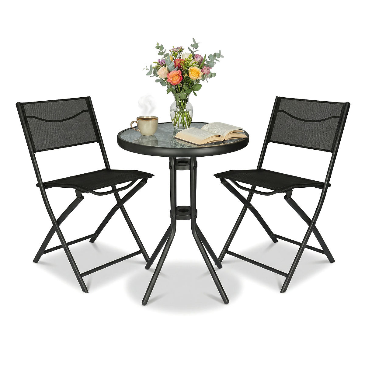 Inhalt des Sets: Tisch + 2 Klappstühle