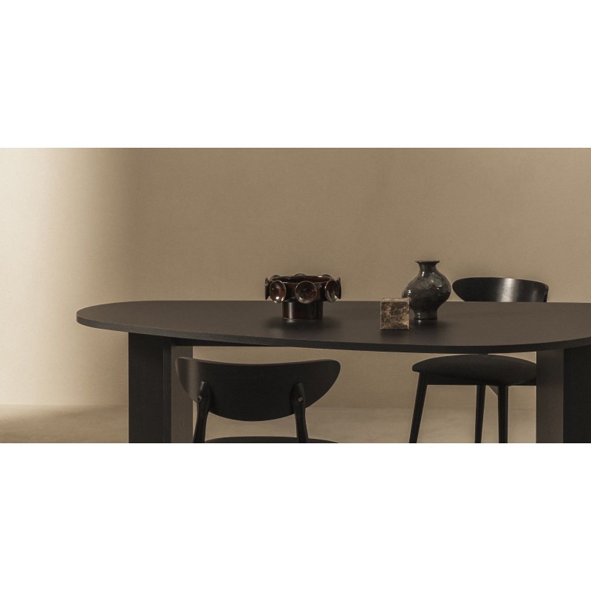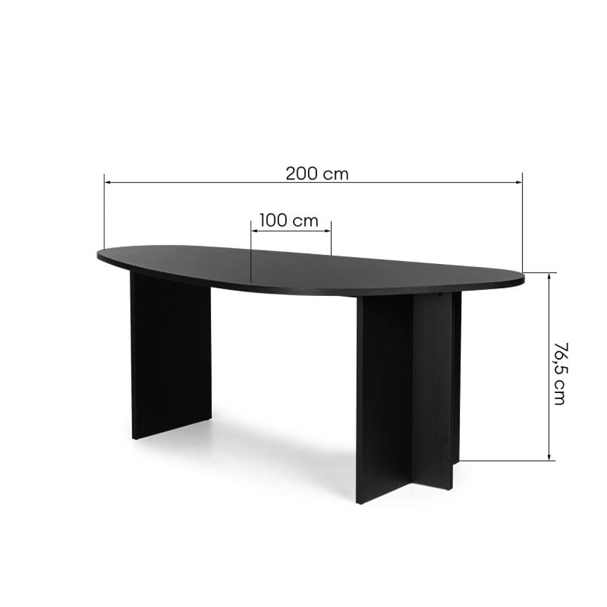 Der Esstisch Zeva beeindruckt mit seiner einzigartigen, unregelmäßigen Plattenform, die dem Interieur eine moderne und künstlerische Note verleiht. Hergestellt aus einer robusten laminierten Platte in schwarzer Farbe, bietet er einen bequemen Platz für bis zu zehn Personen und verbindet Funktionalität mit mutigem Design.