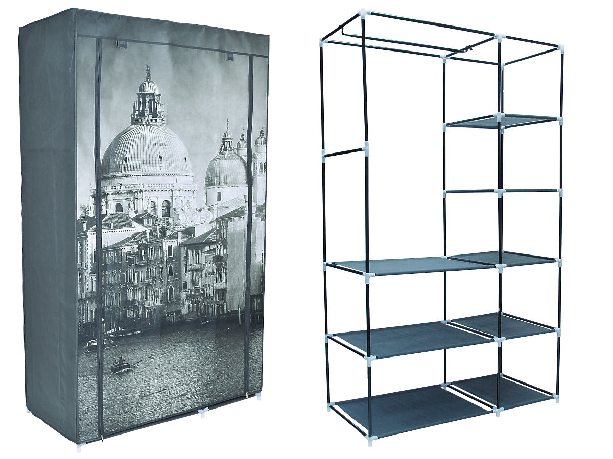Leichte Textilschränke sind eine einfache und kostengünstige Lösung für die Aufbewahrung von Kleidung. Die Schränke haben einen Metallrahmen mit Kunststoffverbindern, sind einfach und schnell zu montieren und in vielen modischen Farben und Mustern erhältlich. Der Textilschrank ist auch für Personen geeignet, die häufig umziehen - er lässt sich in wenigen Minuten zusammenklappen. Dank der Reißverschlüsse an der Vorderseite des Schranks können die einzelnen Teile unabhängig voneinander geöffnet und geschlossen werden.